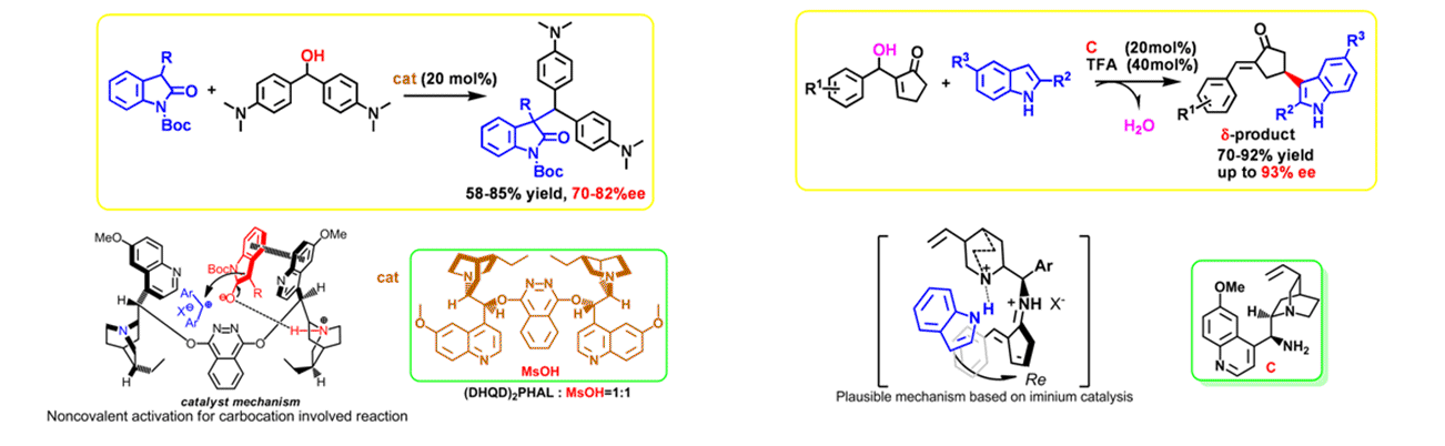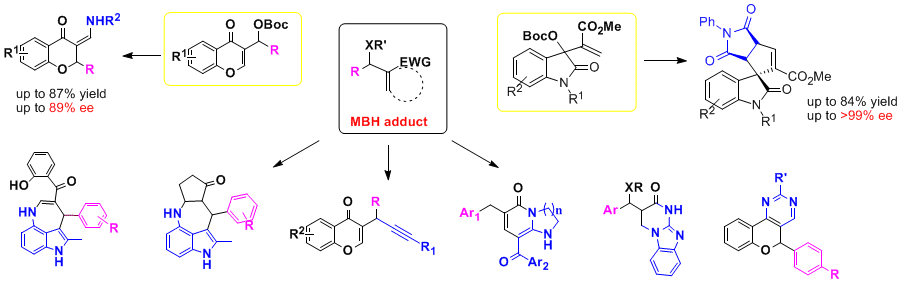 Research in our group focus on the development of efficient and highly selective asymmetric reactions and practical multi-component tandem reactions for the synthesis of compounds with potential biological activities. Our studies are also driven by the discovery of the specific reaction processes and mechanisms that may exist in the green media. By designing suitable catalytic system, some reactions could be carried out better in green media such as water than in organic solvents.