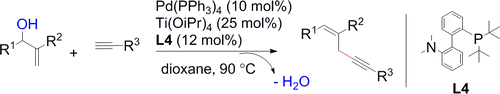Li, Y.-X.; Xuan, Q.-Q.; Liu, L.; Wang, D.; Chen, Y.-J.; Li, C.-J., A Pd(0)-Catalyzed Direct Dehydrative Coupling of Terminal Alkynes with Allylic Alcohols To Access 1,4-Enynes. J. Am. Chem. Soc. 2013 DOI: 10.1021/ja406025p