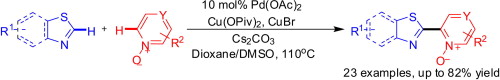Fu, X.-P.; Xuan, Q.-Q.; Liu, L.; Wang, D.; Chen, Y.-J.; Li, C.-J., Dual C–H activations of electron-deficient heteroarenes: palladium-catalyzed oxidative cross coupling of thiazoles with azine N-oxides. Tetrahedron. 2013, 69, 4436-4444.