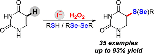 Li, X.-D.#; Gao, Y.-T.#; Sun, Y.-J.; Jin, X.-Y.; Wang, D.; Liu, L.; Cheng, L.* "A NaI/H2O2 Mediated Sulfenylation and Selenylation of Unprotected Uracil and its Derivatives", Org. Lett. 2019, 21, 6643-6647.